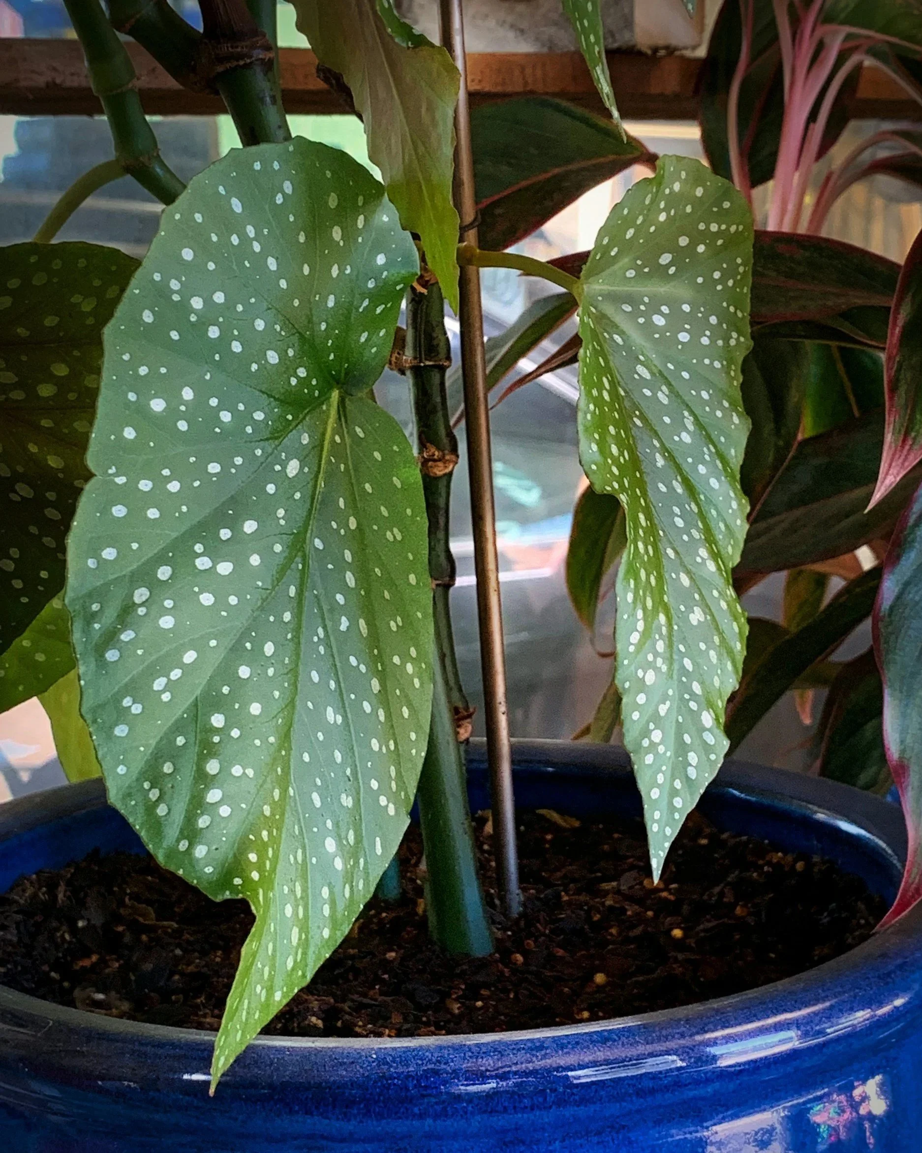 Place your Angel Wing begonia in bright, filtered light. While they love the morning sun, those intense Ohio summer afternoons can be a bit much for them. Use well-draining soil and water when the surface feels dry.